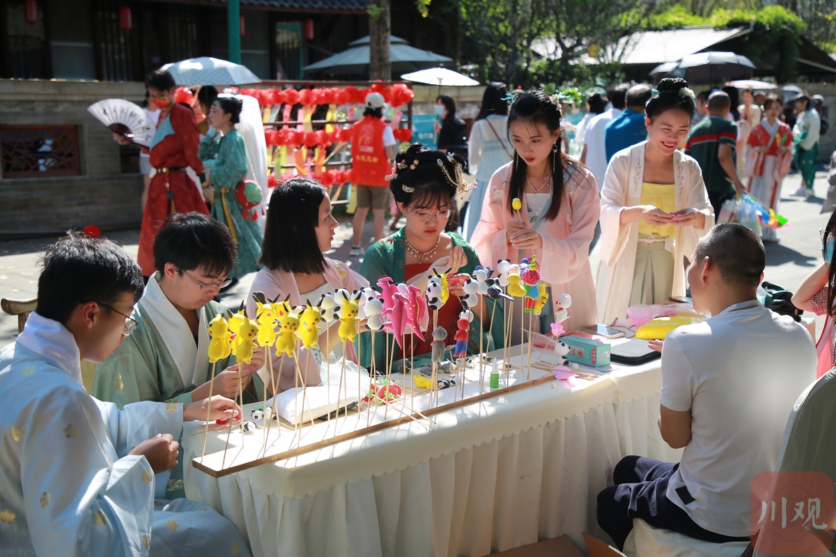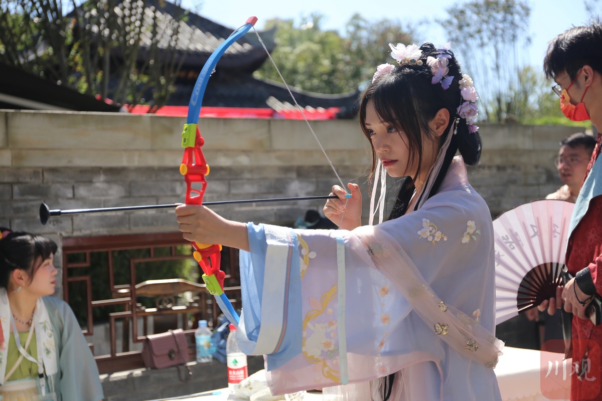 本次活动吸引了众多汉服爱好者前来打卡,小伙伴们穿汉服,欣赏国乐,感受国潮古韵围绕的中秋佳节,体验一场曼妙绝伦的“穿越”之旅。身穿汉服的人们漫步在凤凰湖汉唐街,曼妙裙衫、柳红芙蓉、素色布衫、长风玉立,精美的汉服、清丽的佳人仿佛穿越时空而来,给中秋佳节的凤凰湖增添了一份国潮之美。投壶、猜灯谜、射箭、踢毽子等传统文化活动,让活动现场气氛更加活跃,吸引了众多游客朋友们在此驻足观赏体验。