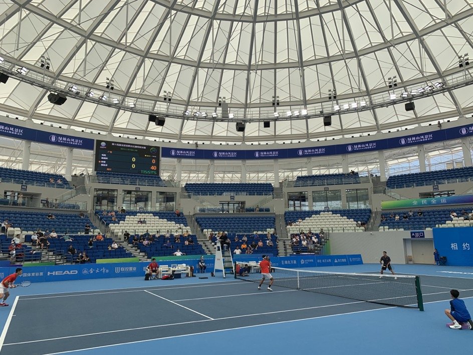 9月19日,第14届全运会群众项目网球比赛9月19日在湖北京山国际网球赛事中心开赛。来自全国25个省区市和1个行业体协共26支代表队,近500名运动员、教练员、技术官员参赛——这是全运会首次设立群众体育比赛网球竞赛项目,同时也是首次将全运会群众比赛项目在异地县级市集中举办。比赛项目分为男子团体、男子双打、男子单打、女子团体、女子双打和女子单打六个项目。