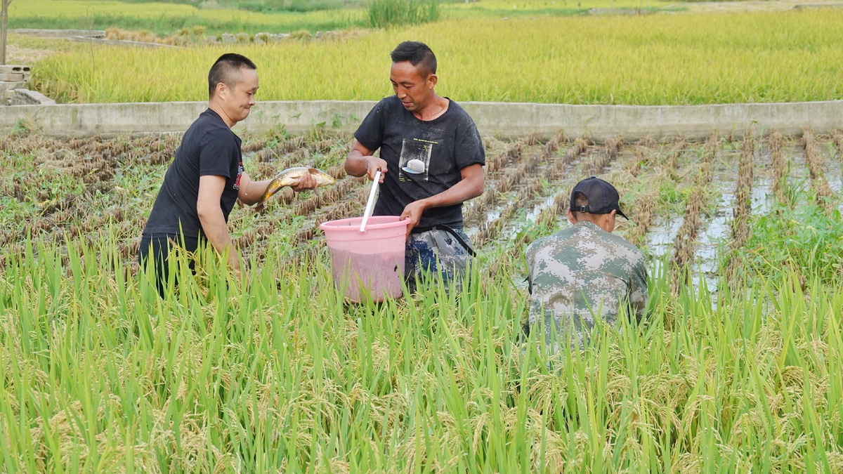 “以前谷子才卖1块多钱1斤,现在直接翻了一倍!”捞起袖子,卷起裤腿,民乐村村民任利走进稻田,打起最后一批水稻。一旁,三四个精壮小伙,从稻田里头捞起了一条肥鱼。