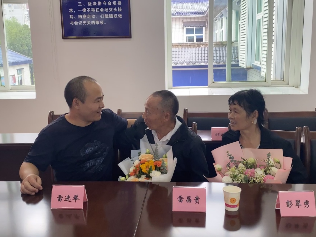 近日,在广安市岳池县公安局的帮助下,雷昌贵夫妇与分离38年的儿子雷选举,于中秋节前在岳池团圆。多年寻觅,这对夫妇脸上已爬满了皱纹,9月18日认亲时,两人看着如今健硕且早已成家的儿子,忍不住相拥而泣。