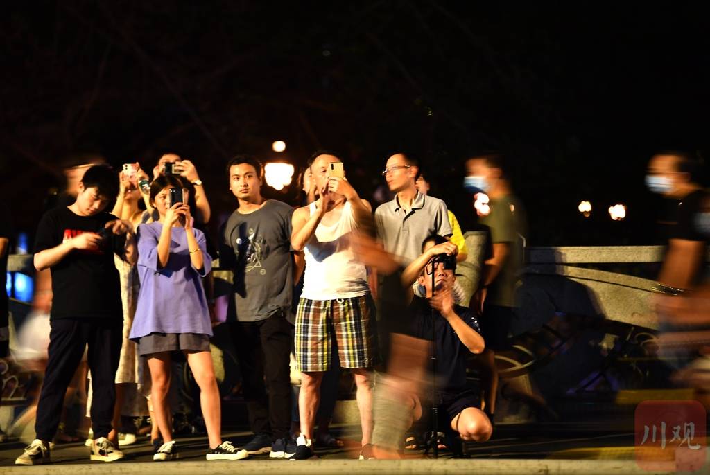 9月21日晚,中秋圆月如期而至,许多市民到成都市的合江亭观赏圆月。在晚上8点20分左右,圆月开始出现在上空,市民纷纷拿出手机记录下又大又圆的中秋月。