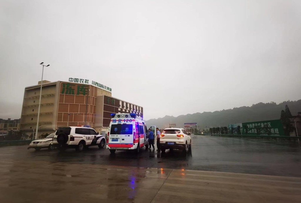 指挥中心接报后第一时间向带班领导进行了上报,带班领导高度重视,立即调度辖区涉及的各收费站和路面执勤警力,将收费站的入口、出口紧急通道打开,安排警车开道带路,同时要求指挥中心利用路面沿途LED显示屏做好避让提示,诱导社会车辆注意让行。同步及时对接雅安市人民医院派出救护车辆到雅安大兴收费站等待接转病员。