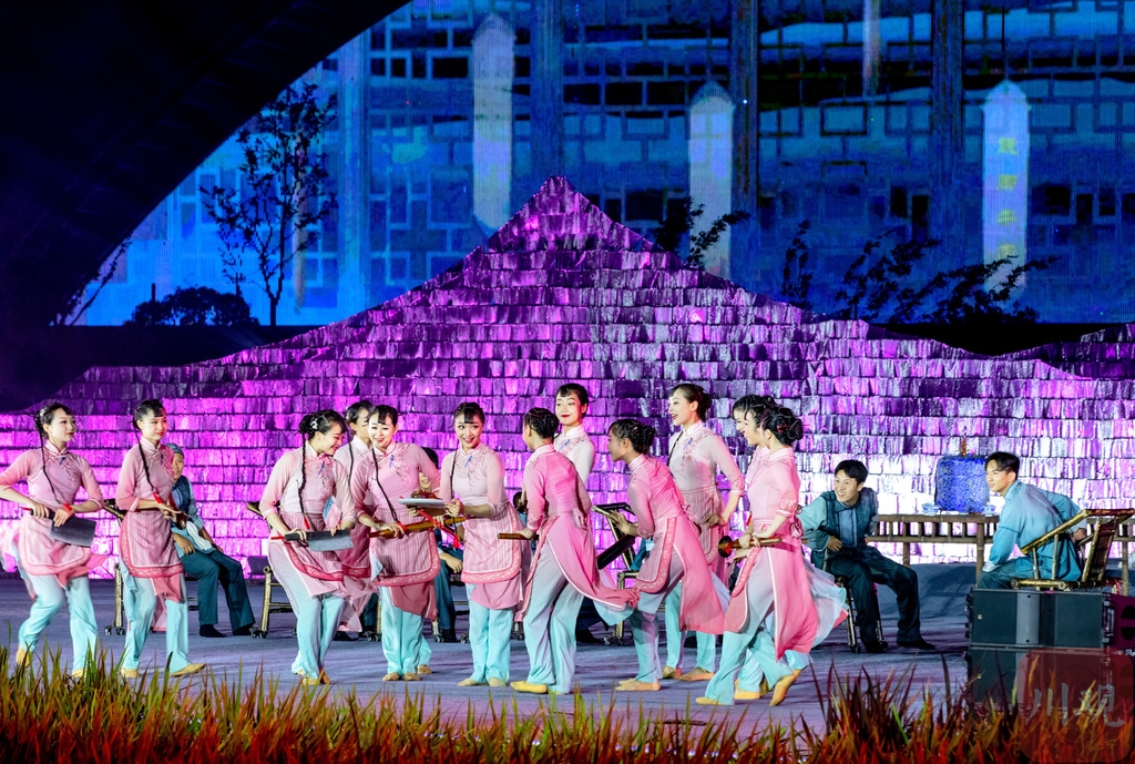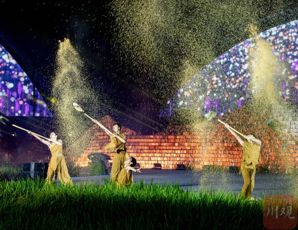 9月23日起,以全球“最大”农博建筑、千亩待丰收稻田为背景,形式各样的庆丰收体验活动将在这里陆续开启。23日晚,一场欢腾的丰收歌舞在天府农博岛上演。