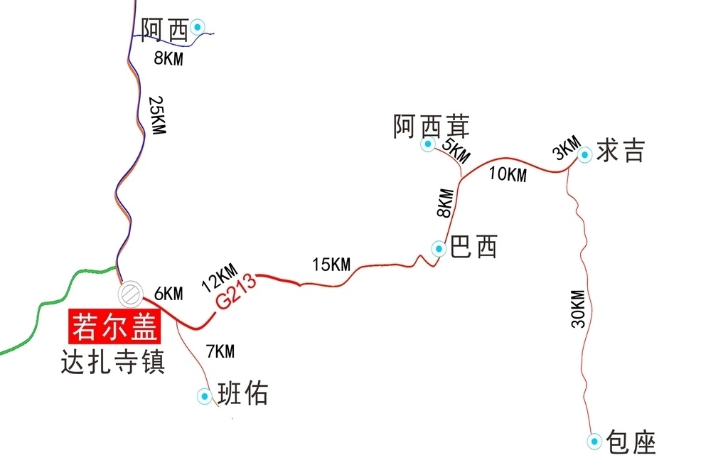 刘旭峰说,长征邮路单程108公里,从若尔盖县城出发,沿途途径班佑13公里-巴西34公里-阿西茸13公里-求吉18公里,最后到达包座30公里。