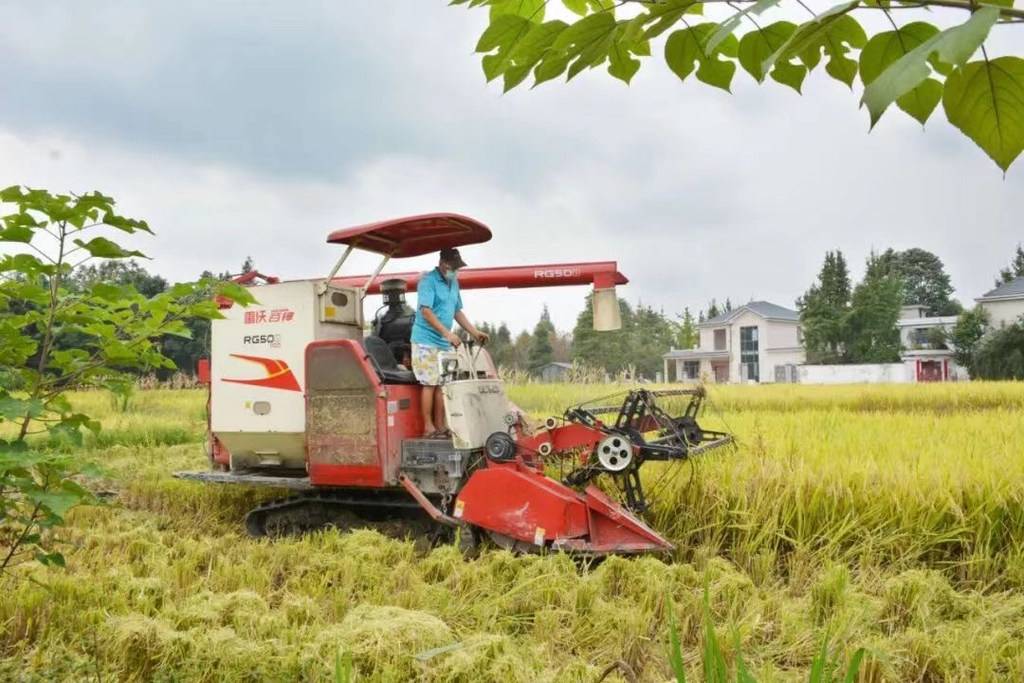 采用机械化收割,不仅节省了人力,且每亩比人力收割增产几十公斤。都江堰市石羊镇繁云农机服务农民专业合作社负责人孔繁云十多年前就从事农机作业,拥有多台大型收割机、拖拉机、开沟机等。据他介绍,近一个月以来,他联合别的合作社共收割1200余亩的水稻。