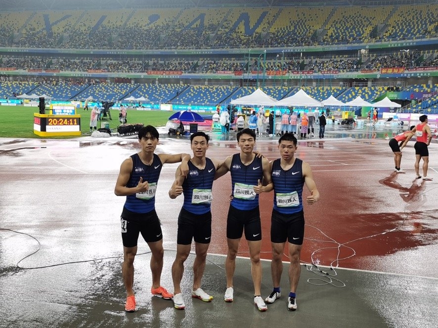 在晚些时候进行的男子4X100米接力决赛中,由奥运接力成员汤星强、谢震业、苏炳添和吴智强组成的联合队出战。决赛,联合队在第八道。出发后第一棒,200米冠军汤星强冲了出去,江苏队也不甘示弱,第二棒谢震业直道出击,联合队稍稍占优,第三棒苏炳添弯道加速成功交接,最后一棒吴智强强力冲刺,力压江苏队的石雨豪,联合队率先到达终点,跑出38秒50的成绩夺冠,苏炳添和汤星强都获得本届第二金。江苏队38秒67获得亚军,四川队38秒83第三,再度捍卫了四川田径在短跑上的优势。