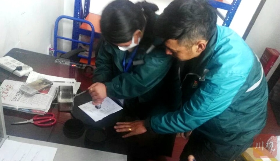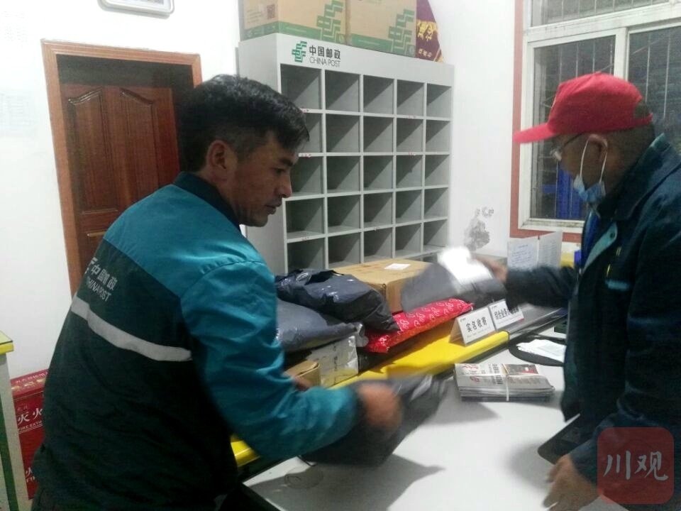 行驶55分钟后,哈弄夺机来到若尔盖县巴西镇邮政所,与同事泽忠措一起分拣邮件、报刊、杂志。整理妥当后,哈弄夺机麻利地将52件邮件、报刊杂志与泽忠措进行移交。
