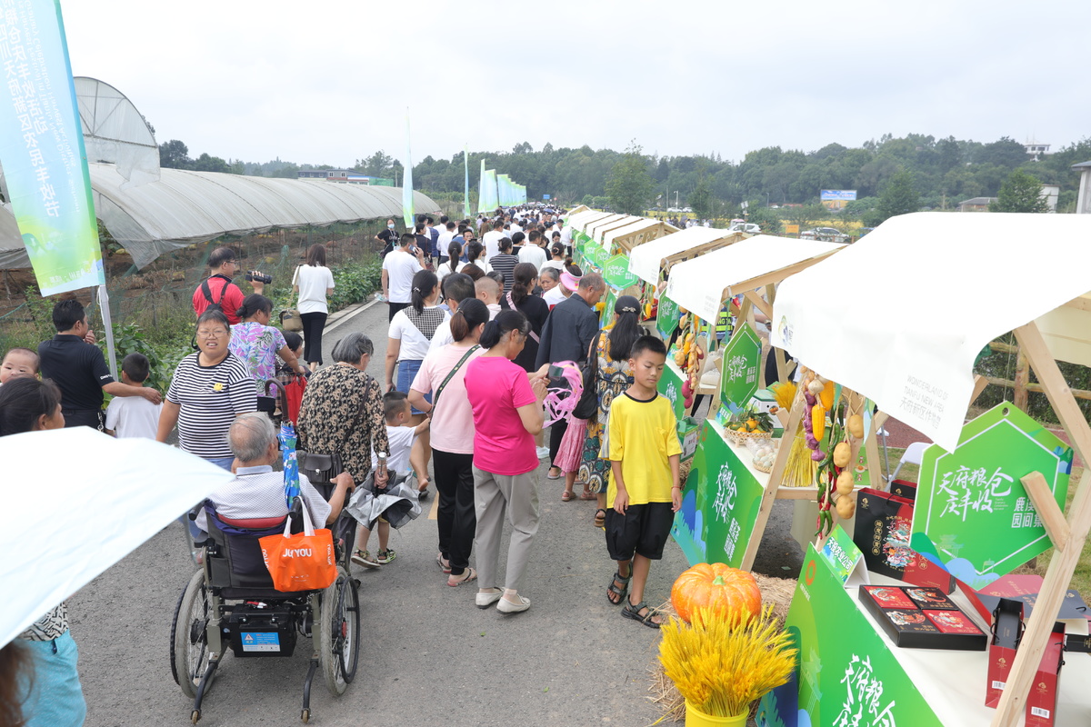 活动现场设置了农产品集市,对天府新区特色农产品进行集中展销推介,大米、蜂蜜、瓜果蔬菜等农产品“悉数登场”,吸引了现场游客纷纷前来观赏、品鉴、购买。一派增产庆丰收的喜庆气氛笼罩在整个活动现场。