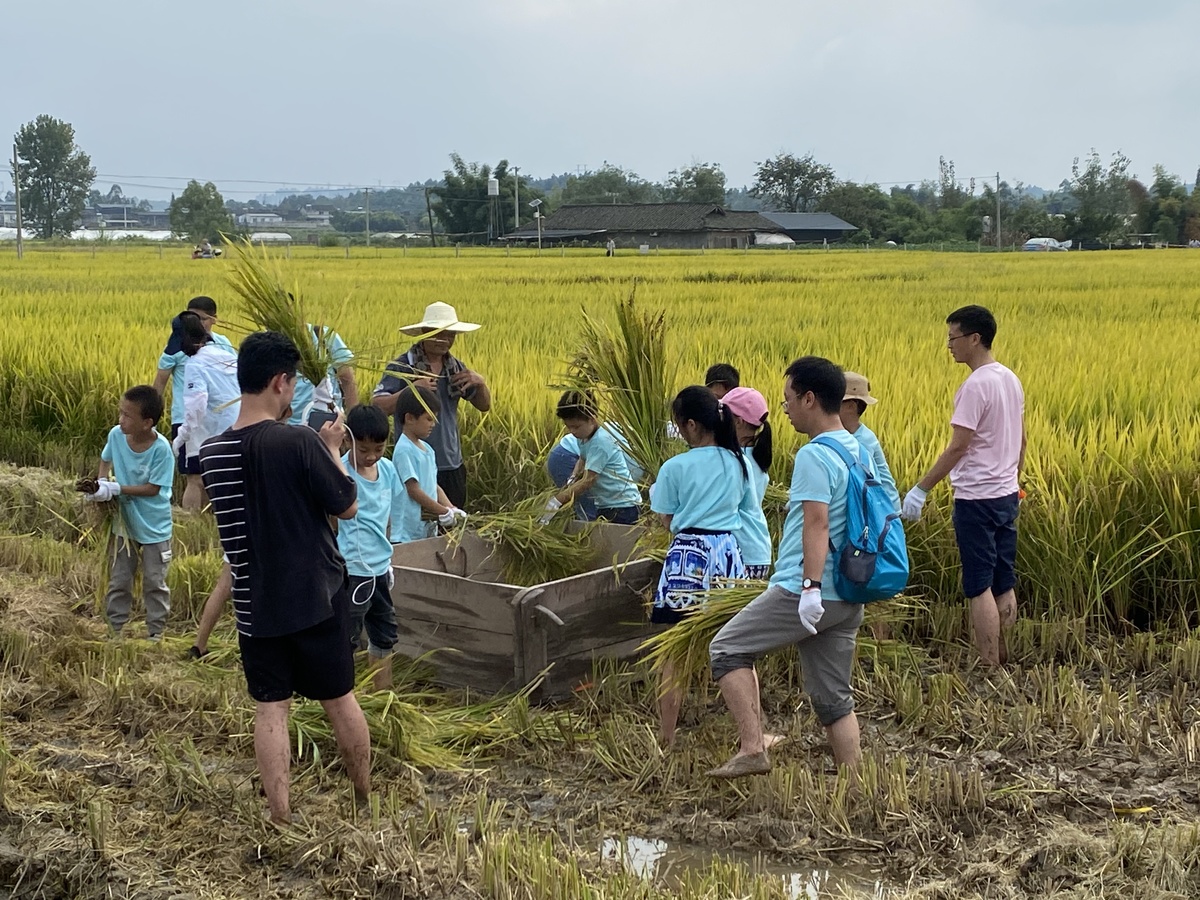 小朋友在家长的带领下,参观了天府新区自勤农机专业合作社,看农用机器,听农业知识讲解,了解水稻种植、生产过程,知道了“一粒大米”端上餐桌的前世今生。