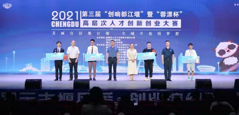 大赛现场,在四川外国语大学成都学院学生艺术团带来的多语种歌曲《成都》和多国服装走秀拉开了本次大赛的序幕。决赛环节,各位项目负责人在项目路演中侃侃而谈,在回答评委提问环节亦展现出各项目的魅力与成果。经过激烈角逐,最终决出了一等奖1名、二等奖2名、三等奖3名、优秀奖4名,与会嘉宾为获奖项目颁发了证书、奖杯和奖金。来自四川农业大学都江堰校区的创新项目"MICP"微生物加固工艺获得一等奖。