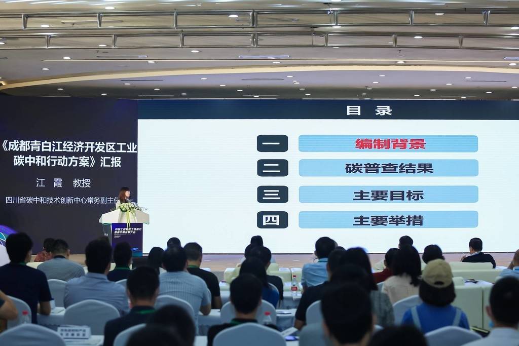 在关注的目光中,四川省碳中和技术创新中心常务副主任江霞走上演讲台,向院士及大会阐述《行动方案》。