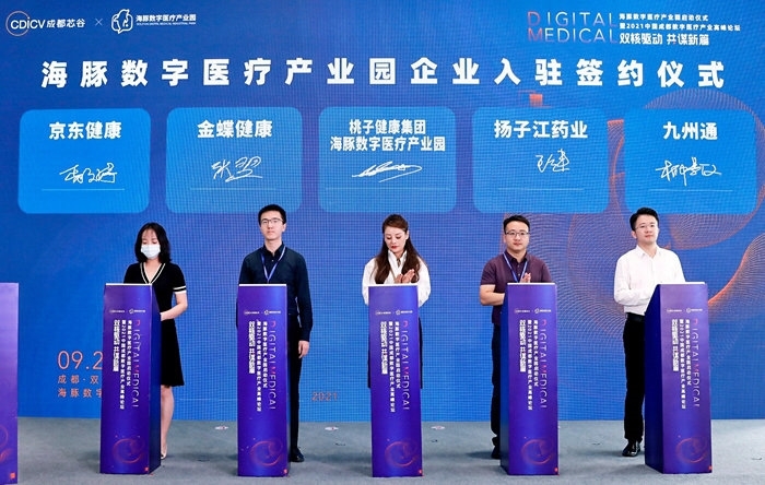 会议当天,落地双流的海豚数字医疗产业园宣布正式启动。会上,京东健康、金蝶健康、扬子江、九州通、嘉事堂药业等企业现场签署了入驻协议。