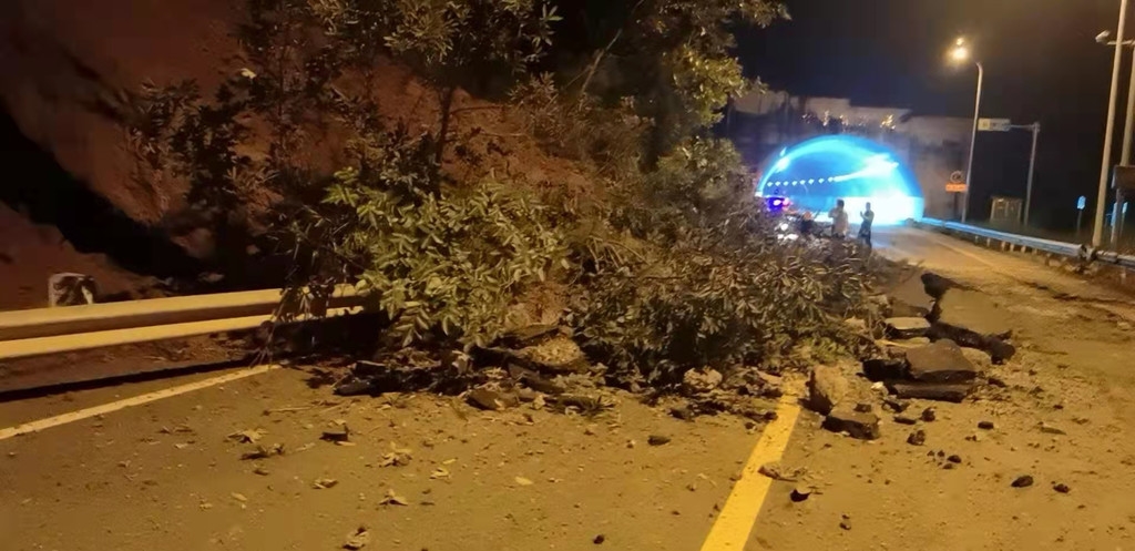 在剑阁县,持续暴雨导致下普快速通道K1930+008段出现山体滑坡,阻断道路,滑坡量约500立方米。通过及时抢险,目前已经完成半幅通车,预计明日上午全面抢通。