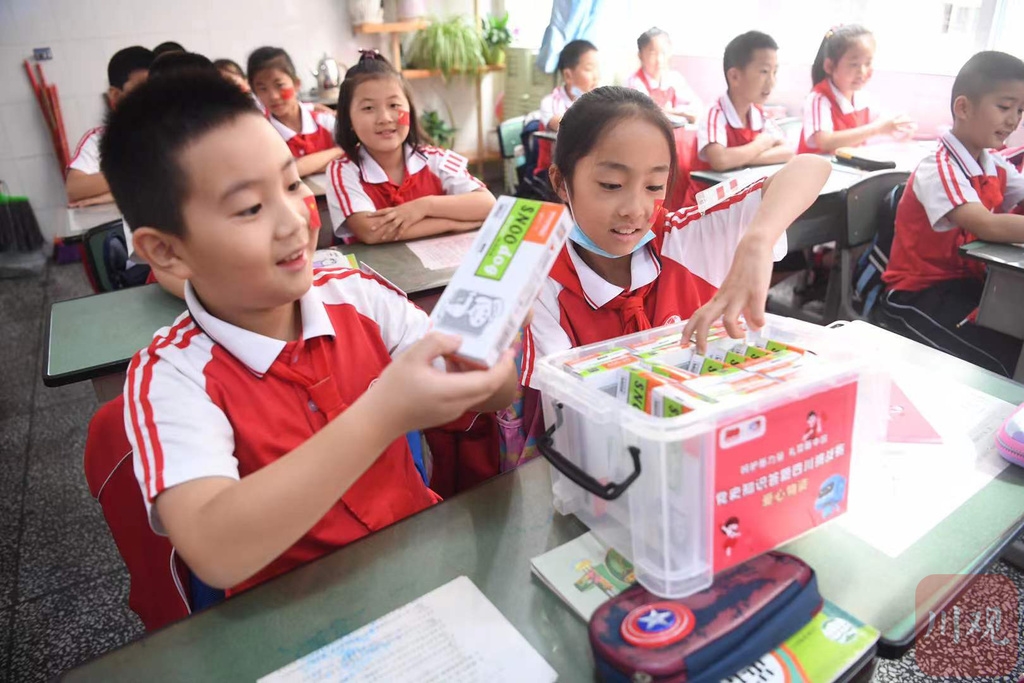 9月27日,泸定桥畔,四川省甘孜州泸定县泸定桥小学的1200余名小学生,收到了属于他们的新学期的礼物:书本、文具、彩色笔、篮球、跳绳……