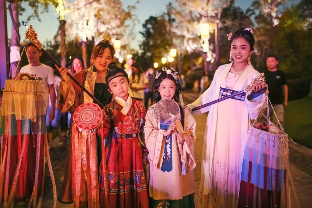 9月20日晚,遂宁市河东新区莲里公园,2021年四川省“万人赏月诵中秋”遂宁分会场文旅展示活动现场,明月、花灯、古典乐舞等传统文化元素交织融合。