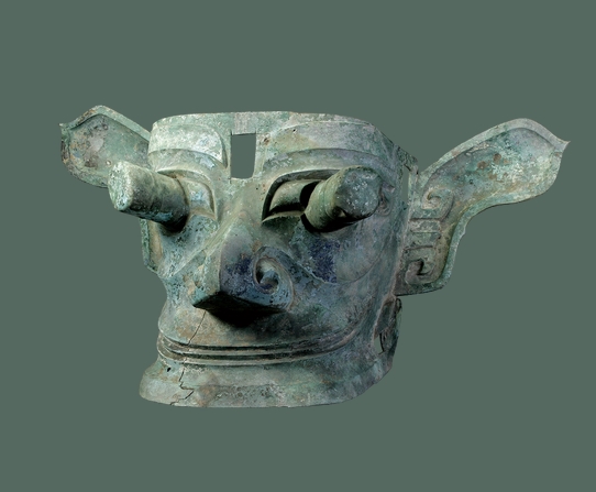 方勤认为,相比玉器来说,青铜器可塑性更好,技术工艺成熟,因而神像更夸张,如纵目形象的眼睛更长、垂耳的耳朵更夸张。