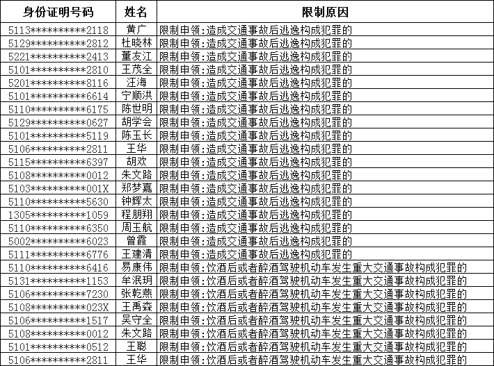 其中85人因饮酒或醉酒后驾驶机动车发生重大交通事故构成犯罪,依据《中华人民共和国道路交通安全法》第91条第5款之规定,被公安交管部门处以“吊销驾驶证且终生禁驾”。157人因造成重大交通事故构成犯罪且逃逸,依据《中华人民共和国道路交通安全法》第101条第2款之规定,被公安交管部门处以“吊销驾驶证且终生禁驾”。年龄最大的71岁,年龄最小的20岁,均是因造成重大交通事故构成犯罪且逃逸被处终生禁驾。