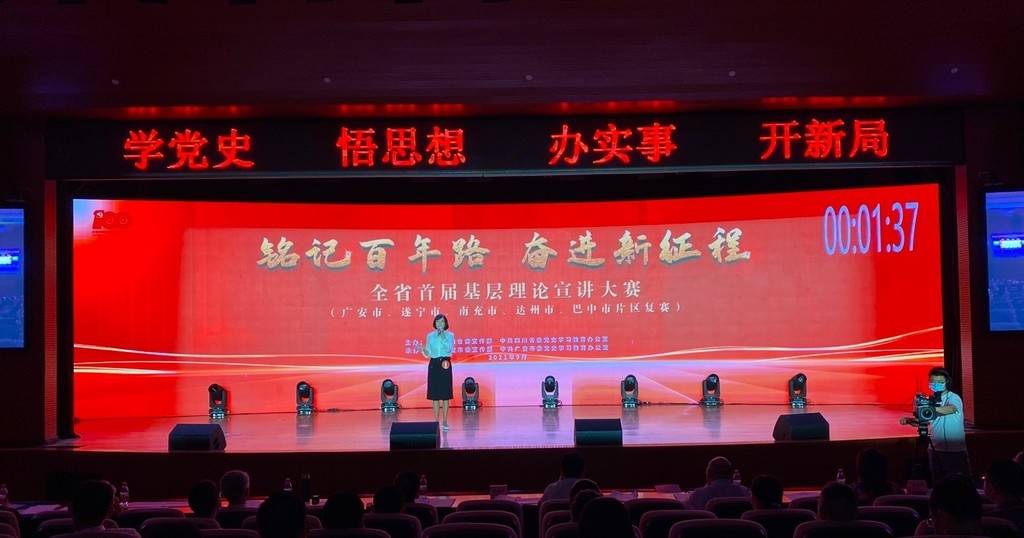 9月28日9时,“铭记百年路 奋进新征程”四川省首届基层理论宣讲大赛第二片区复赛在广安拉开帷幕。来自广安市、遂宁市、南充市、达州市、巴中市等5地的10名参赛选手,深入挖掘当地丰富的红色文化资源,以生动通俗而富有感染力的表达方式,宣讲了一个个感人肺腑的故事,为观众们带来一堂特别的党史课。