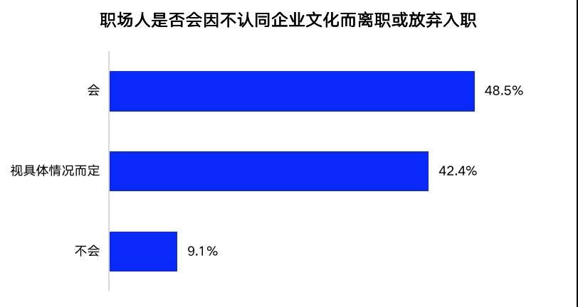 近一半职场人愿意因为文化认知不同而离职或放弃入职