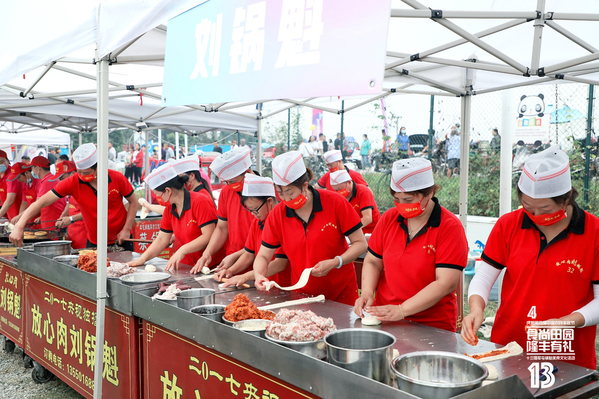 锅盔打起来,市集摆起来,锣鼓敲起来……9月29日,彭州市隆丰三和大院洋溢着欢庆的氛围,以“食尚田园 隆丰有礼”为主题的庆祝第四届中国农民丰收节暨第十三届军屯锅魁美食文化活动开幕,当地农民献上欢快的歌舞以及琳琅满目的各式农产品,庆祝一年一度的丰收,展示幸福美好的乡村生活。