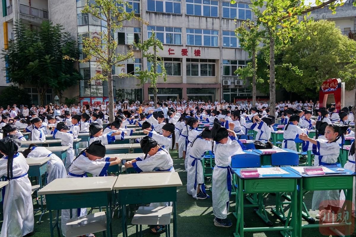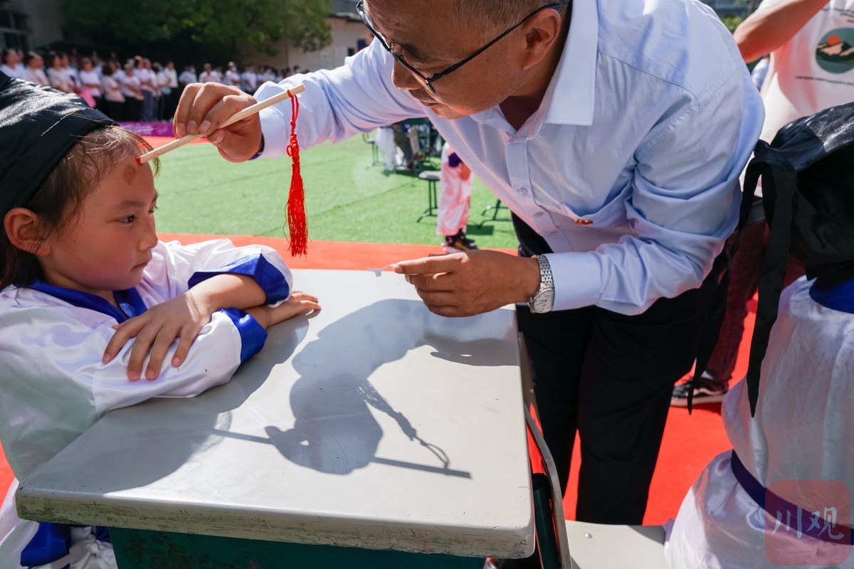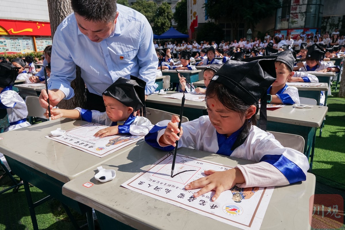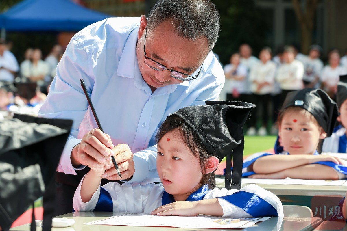 金色的九月,秋高气爽,丹桂飘香。在这收获的季节里,步入小学一年的孩子们也开启了人生新的篇章。9月28日,绵阳市一小学举行了2021级新生开笔礼。一系列开笔礼仪式带给了孩子们满满的仪式感,让他们接受到我国传统文化的熏陶,开启人生新的篇章。