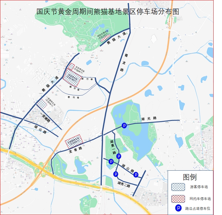 交警温馨提示: 自驾车前往熊猫基地景区的游客,严禁将车辆停放在蜀龙路、绿竹巷、楠竹巷。由于上述道路涉及游客步行通道,所有车辆必须进入停车场内方可上下客,如在的路边上下客,交警部门将严格依法进行处理。景区出游高峰(09:30-15:00)期间过境社会车辆,建议选择川陕路、北湖龙青环线进行绕行。
