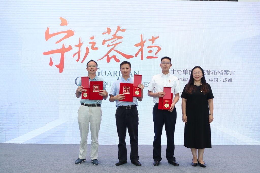 在现场,三位“蓉档守护人”依次解读并守护三份蓉城红色珍档,成都市档案馆馆长刘淑华向守护人颁发荣誉证书和“守护蓉档”纪念章。
