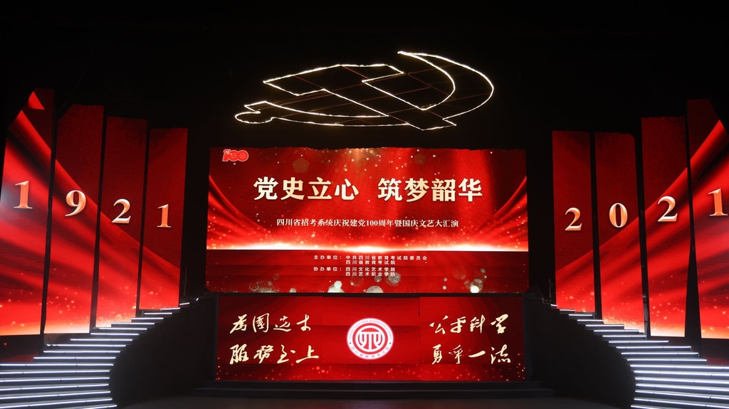 9月29日,为切实把党史学习教育做深做细,不断增强广大党员干部爱党、爱国、爱岗意识,在第72个国庆日即将到来前夕,由四川省教育考试院主办的“党史立心·筑梦韶华”文艺大汇演在四川艺术职业学院举行。