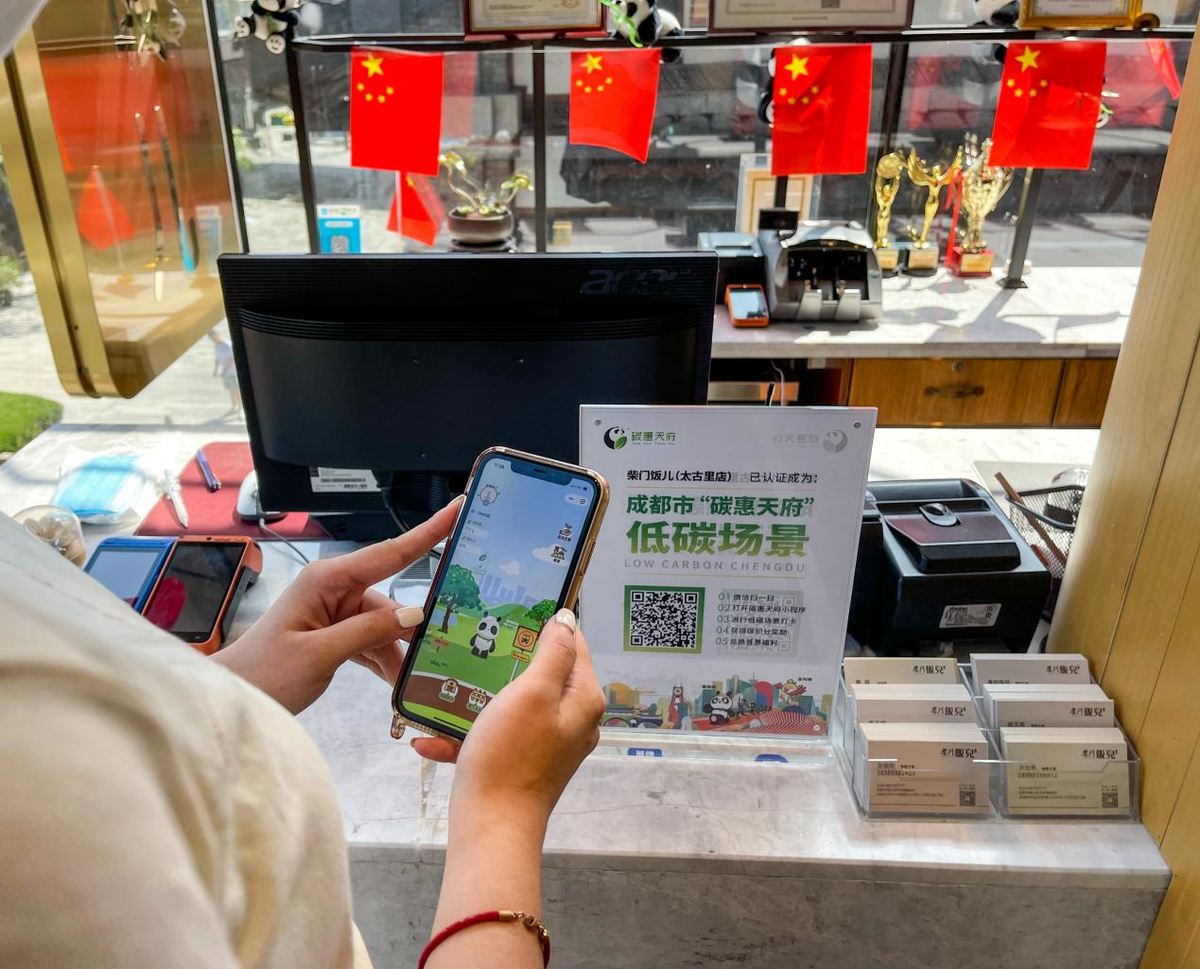 9月30日,成都市民张女士来到柴门饭儿(太古里店)就餐打卡。作为成都市“碳惠天府”绿色公益平台的老粉丝,她在得知消费领域低碳场景上线后,就计划前来体验打卡,“绝不错过任何获得‘碳积分’奖励的机会。”