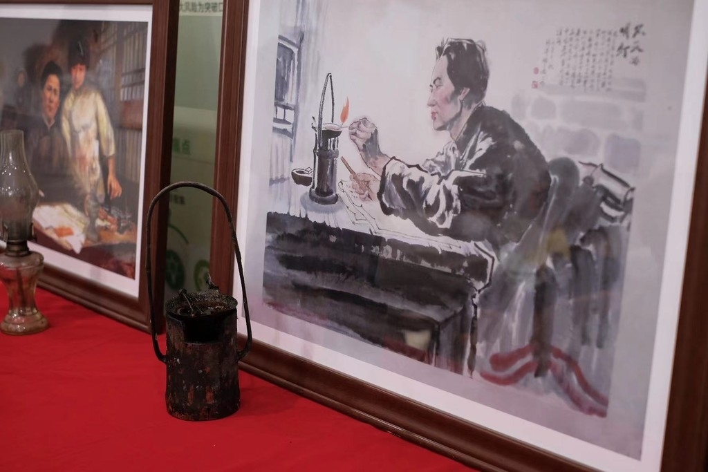 “这盏灯跟画上毛主席用的灯在形状、材质、用法上,大体一样。那时灯油奇缺,一个连队就一盏,开会时才点三根灯芯,平时就点一根。我曾经让孩子们关上屋里的电灯,点了一盏以前的灯,灯苗只有黄豆大小,孩子说,啥都看不见。我说,不是的,古人多少皇皇巨著和我们至今口能称颂的经典,都是在这样的灯下写出的;生死存亡之际,毛主席多少指明方向、坚定道路的文章也是在这样的灯下写出的。”
