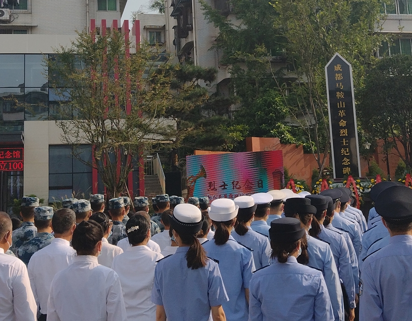 位于金牛区驷马桥街道的马鞍山烈士纪念园,掩埋着40余位英烈,他们既有红军、八路军战士,也有曾经在解放战斗中参加过临汾战役、太原战役等数次恶仗、大仗的指战员,最后在解放大西南和成都剿匪战役中牺牲的英烈。当天,烈士遗属、退役军人代表,公安、部队官兵,中小学师生以及各界群众近300人参加了缅怀革命先烈的活动。