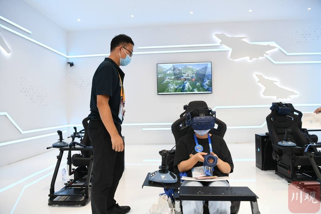 除了歼-20威龙机甲,这里还可以借助VR模拟飞行器,体验驾驶歼-20在不同空域、不同环境下飞行。戴上VR头盔,飞行中需要一边做计算,一边控制方向反击敌方,需要左右脑并用。而事实上,空军飞行员在驾驶舱中,需要同步进行的操作还更多。