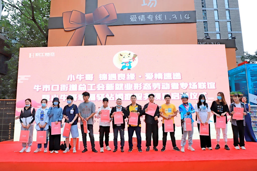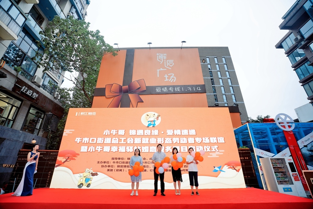 9月30日记者从成都市锦江区总工会获悉,在国庆节来临之际,锦江区总工会联合区妇联、牛市口街道日前在锦江区1.314爱情专线(邂逅广场)启动小牛哥幸福驿站婚恋服务项目,同时举办“小牛哥·锦遇良缘·爱情速递”新就业形态劳动者交友专场联谊活动,让骑手小哥哥、小姐姐们收获爱情,邂逅幸福,以此吸引更多新就业形态劳动者来成都到锦江生活创业、建功立业、安居乐业。