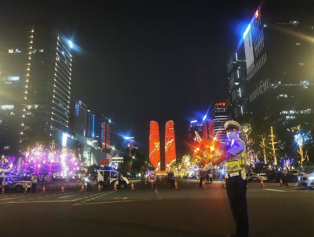 当日20时,成都交警六分局民警按照相关交通组织措施,对交子大道步行街周边道路实施了临时交通管理措施,除行人以外的机动车、非机动车均不能进入步行街。并积极引导车辆进行绕行和入场停放,保障步行街及周边道路的安全畅通。记者在现场看到,游人在步行街进出有序,车辆在执勤交警的引导下安全通行,整个区域的道路交通非常平稳。