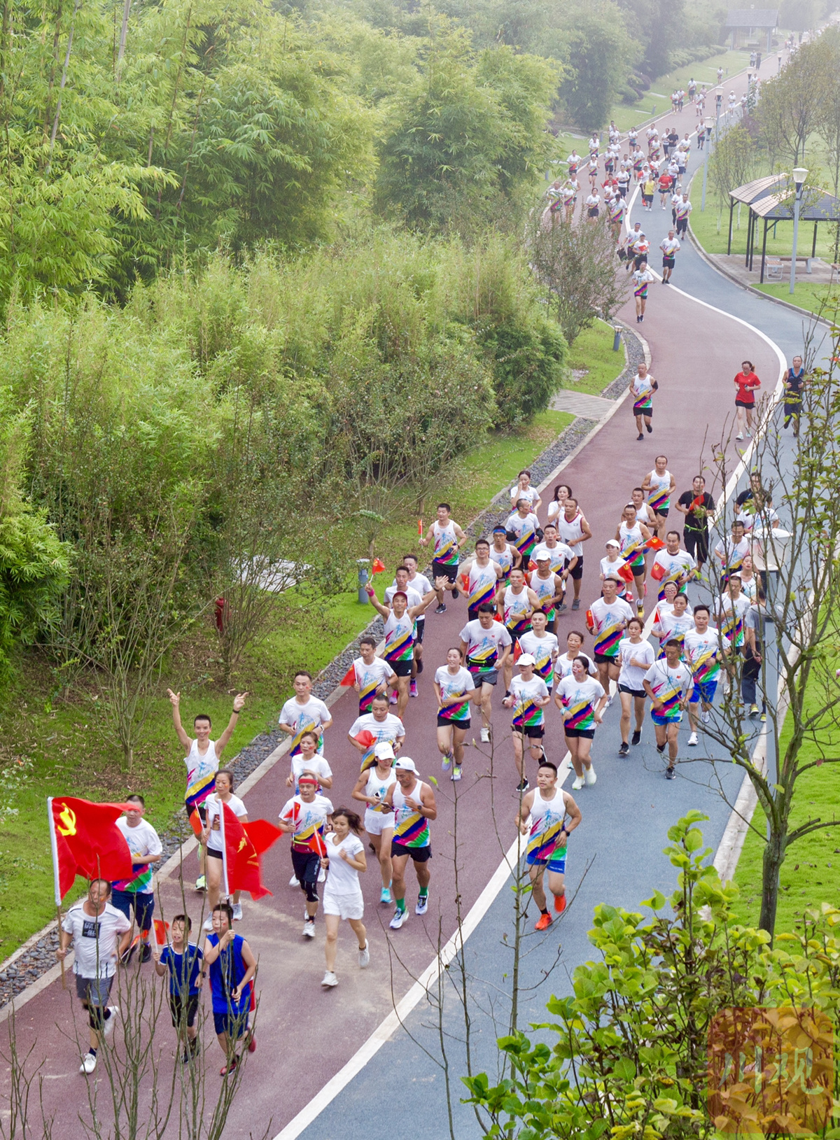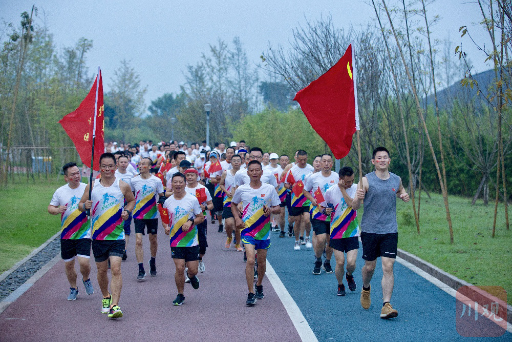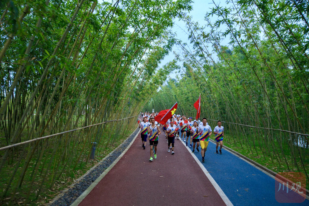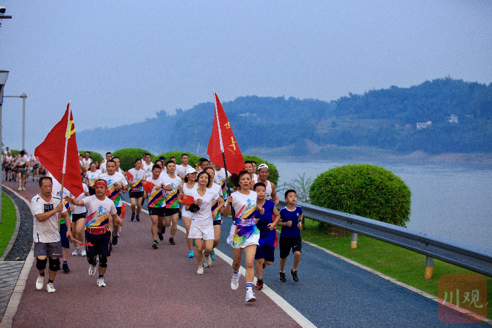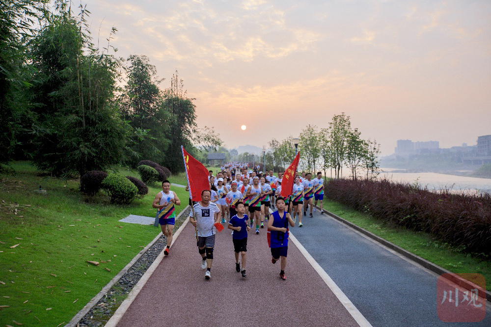 10月1日早晨6:30,在宜宾“万里长江第一岛”——江安长江竹岛,300多名长跑爱好者举行“庆国庆,为爱奔跑”环竹岛长跑活动。活动在齐声欢唱《我和我的祖国》中拉开序幕,300多名长跑爱好者踏着铿锵的脚步,环竹岛一周跑完10.01公里路程,以此祝福我们伟大的祖国繁荣昌盛。