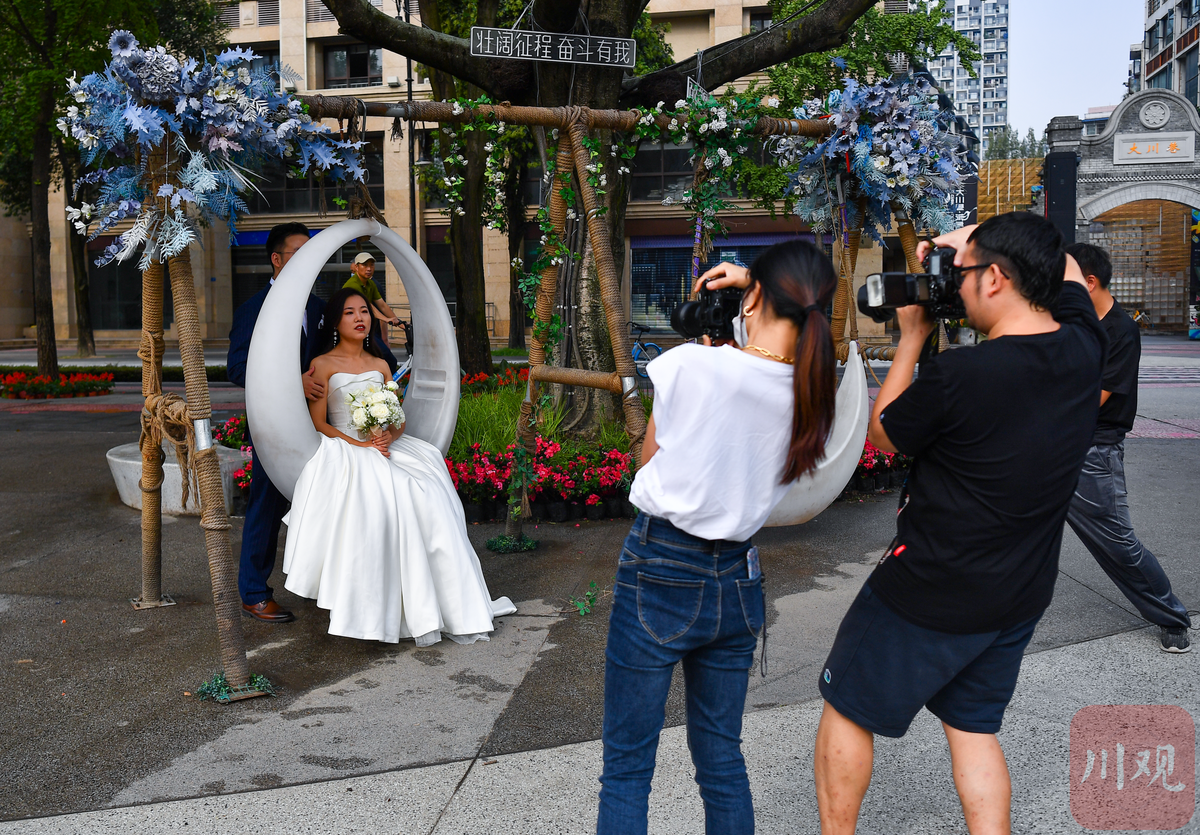 新人们在合江亭登记处留下美好的瞬间