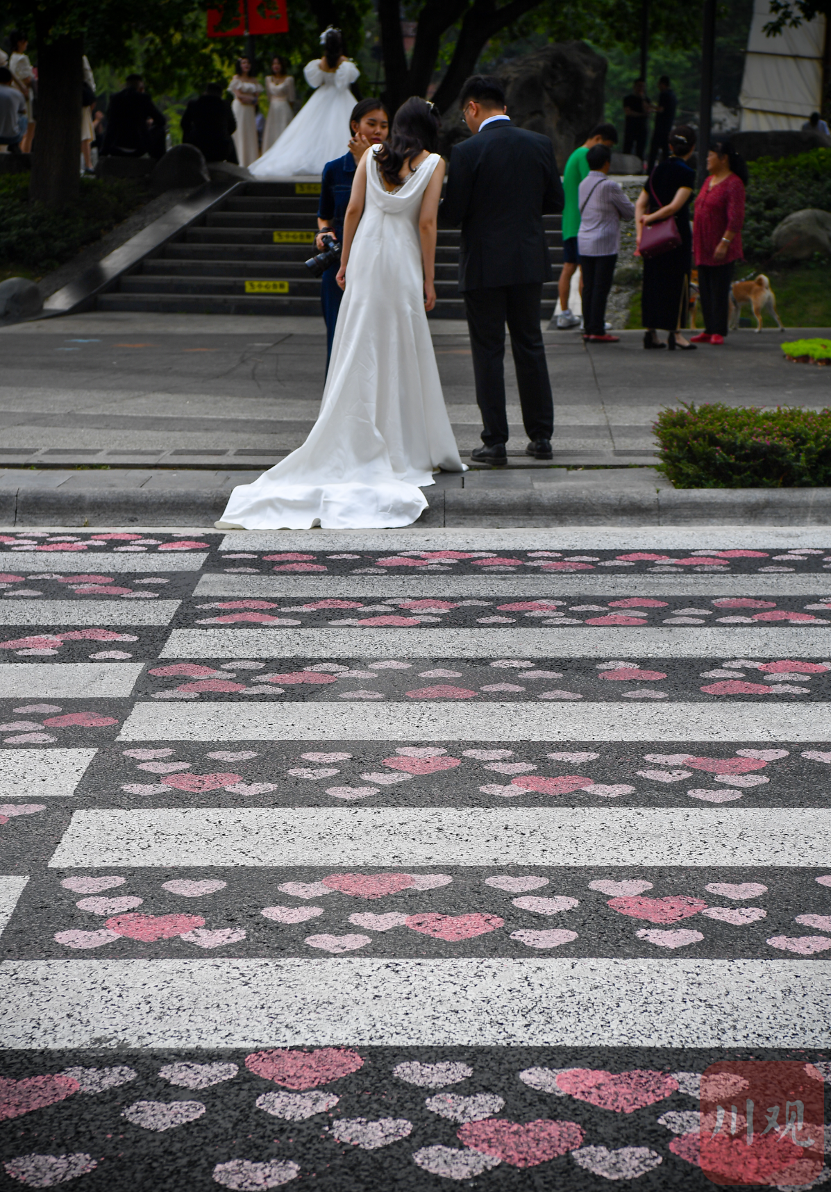 新人们在爱情斑马线留下美好的瞬间