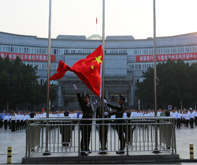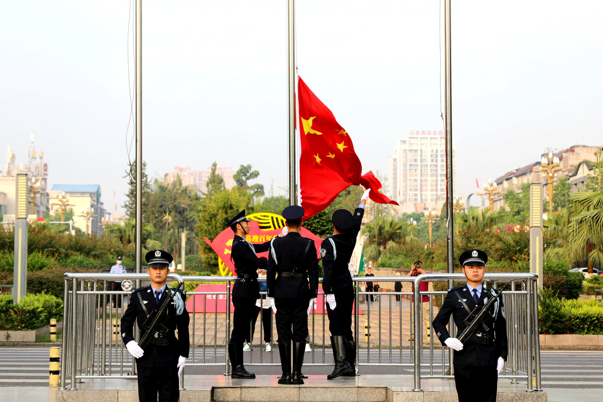 10月1日8时,泸县人民广场举行2021年国庆节升旗仪式,庆祝中华人民共和国成立72周年。