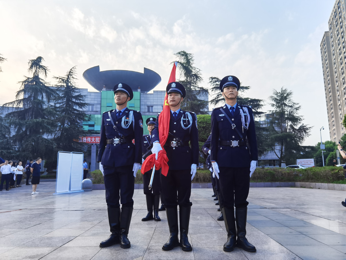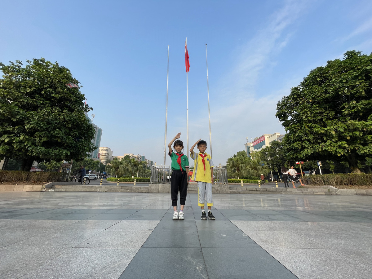 朝阳下,升旗仪式正式开始。国旗护卫队迈着雄健的步伐,将国旗护送至升旗台。在激昂的国歌声中,鲜艳的五星红旗冉冉升起,全场人员满怀崇敬之情,向国旗行注目礼,祝福祖国繁荣昌盛。
