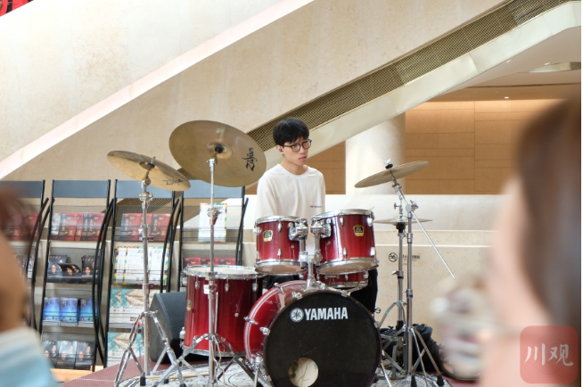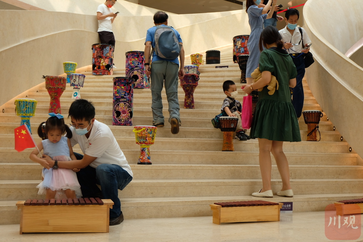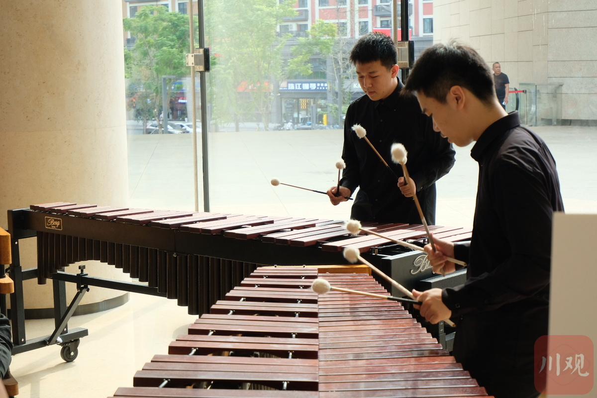 清脆的马巴林、沙沙的非洲鼓、富有节奏感的酷炫爵士鼓轮番上阵……乐手们的演绎着欢快悦耳的旋律,既带孩子看到了新鲜的乐器,感受了现场音乐,同时也能看到展板上的音乐科普知识。每场音乐演出结束后,都有叫好声和鼓掌声。据成都城市音乐厅工作人员介绍,这些表演者都是来自四川音乐学院教育学院和打击乐专业的优秀师生代表。