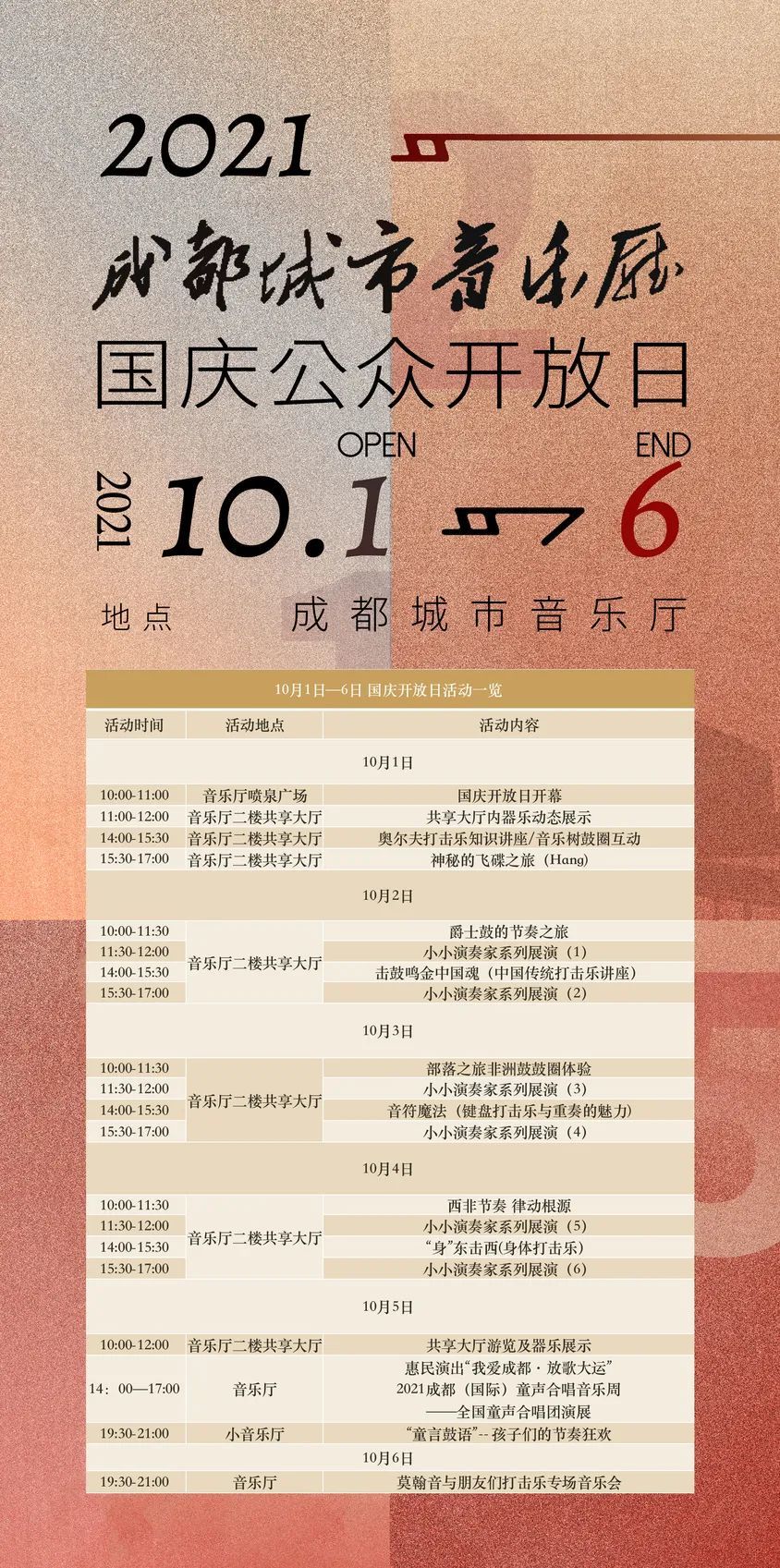 附:成都城市音乐厅国庆公众开放日活动安排表