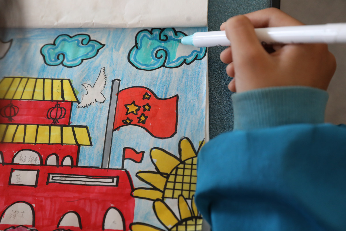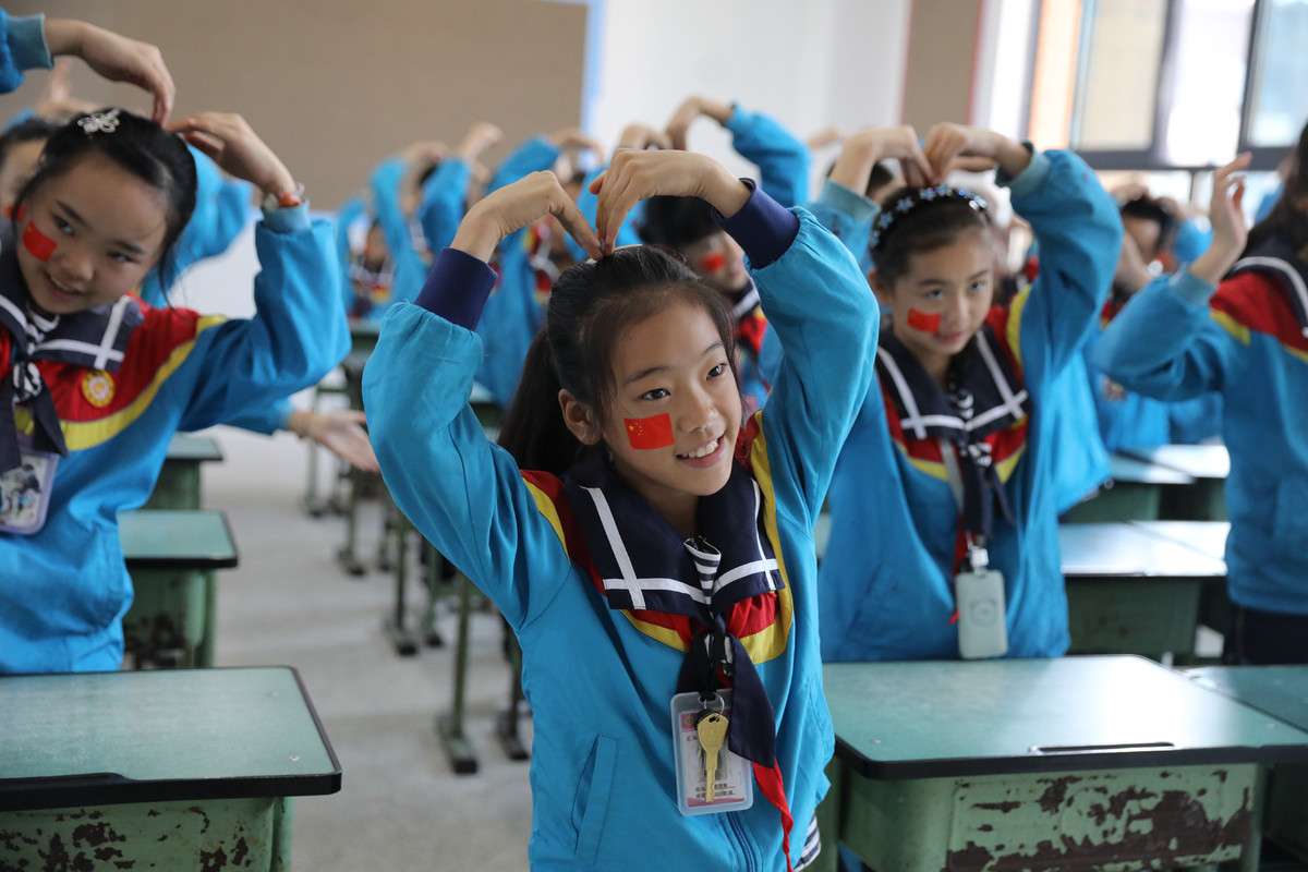 9月30日上午,泸县城东小学几间教室里热闹非凡。唱歌、演讲、绘画、手语操……来自灾区的龙脑桥中心小学校4至6年级的孩子们用自己的方式,为祖国送上真挚祝福。