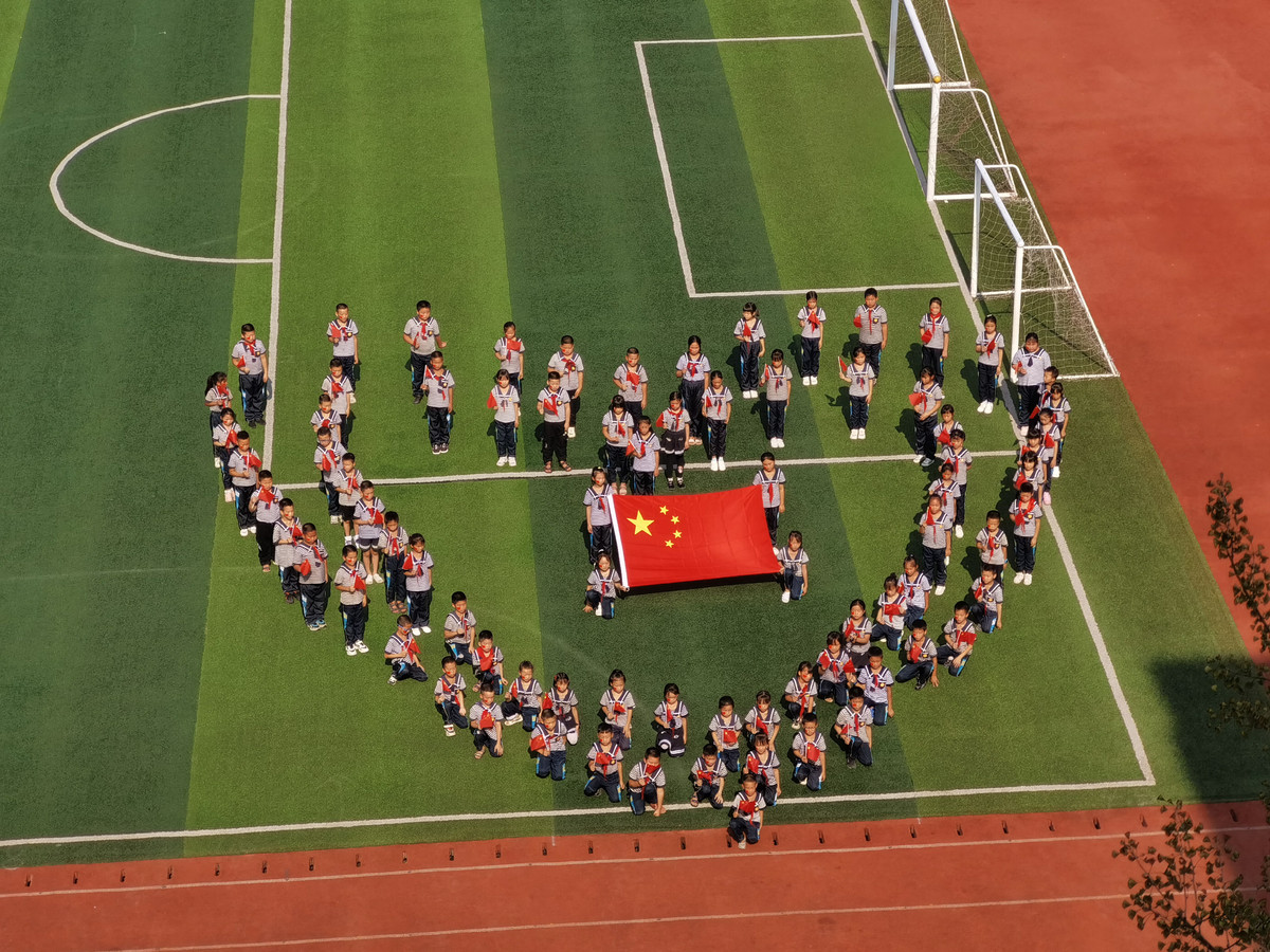 与此同时,同层楼数间教室里,传唱出炽热的爱国之声,集体合唱爱国歌曲《大中国》、表演手语操《听我说,谢谢你》,绘画天安门广场,在操场上摆出“中国心”,各班孩子们纷纷给伟大“母亲”庆生。