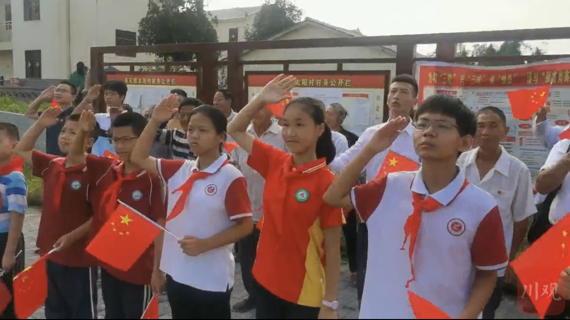 阳光明媚,微风徐徐。当天一早,太阳村村民闻讯赶到村党群服务中心,小学生佩戴上了红领巾。“今天是祖国母亲的生日,在这个伟大的时刻,共同欢庆。”学生说。
