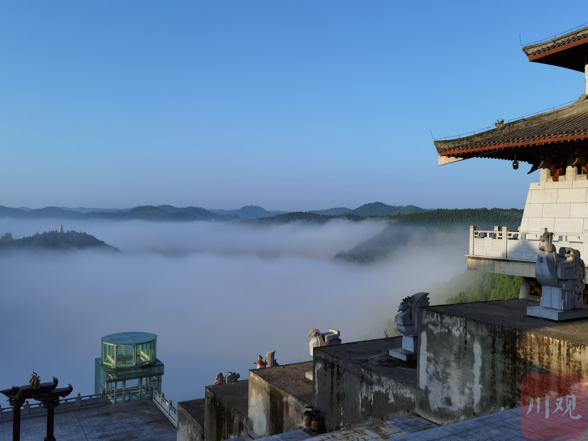 近日,绵阳市盐亭县天气晴朗,在嫘祖陵、西陵镇麒麟村等地出现云海,只见云海漫漫,露出座座山峦,房屋若隐若现,宛如仙境。