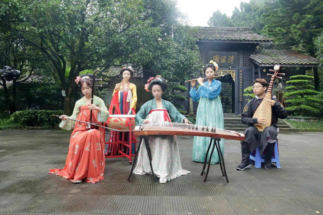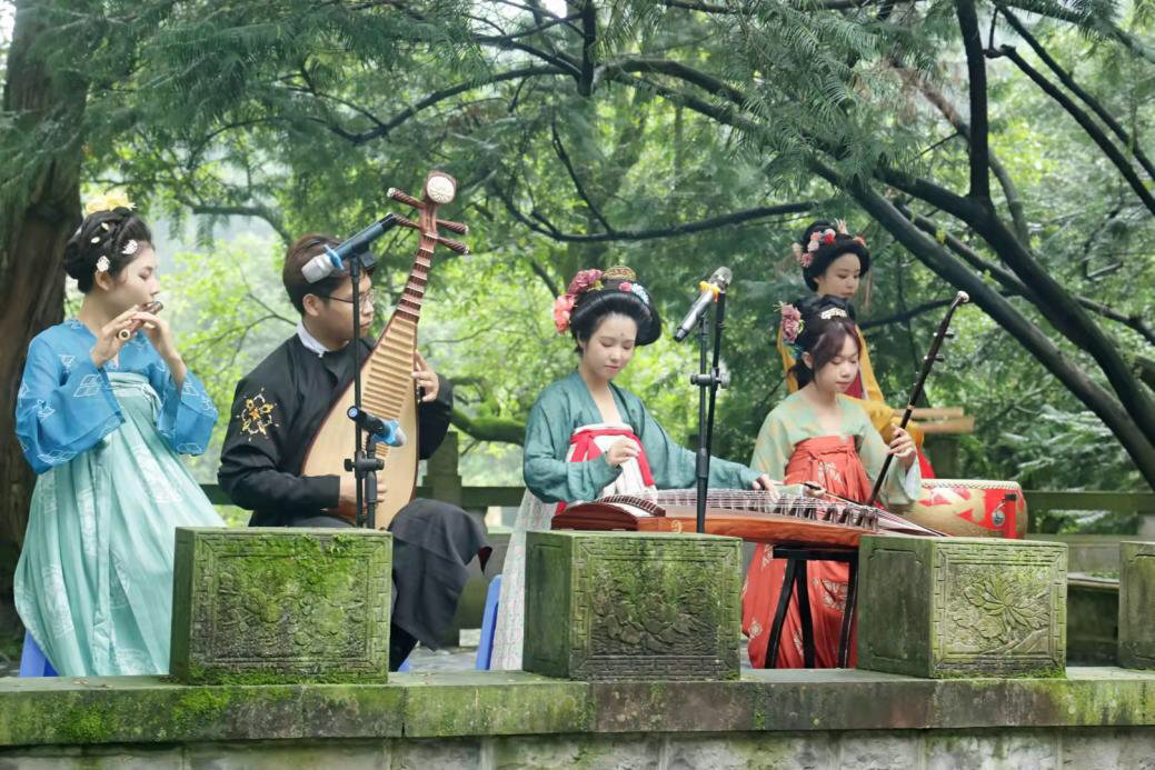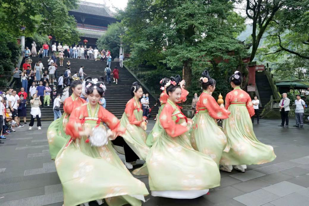 当天上午,来到青城山-都江堰景区的游客现场感受到了一场特别演出——由成都本地一群优秀舞者复原的舞蹈《唐宫夜宴》。14名唐朝仕女,用婀娜多姿、秀逸韵致的舞蹈将游客“一秒带回大唐盛世”。细心的游客发现,青城山-都江堰景区多出了许多“合影打卡装置”,装置上书“我”“爱”“祖”“国”“我”“爱”“都”“江”“堰”(青城山)等字样。只要游客与这些字样合影留念,收集笑脸,合影打卡所有字样,就有机会获取打卡福利。