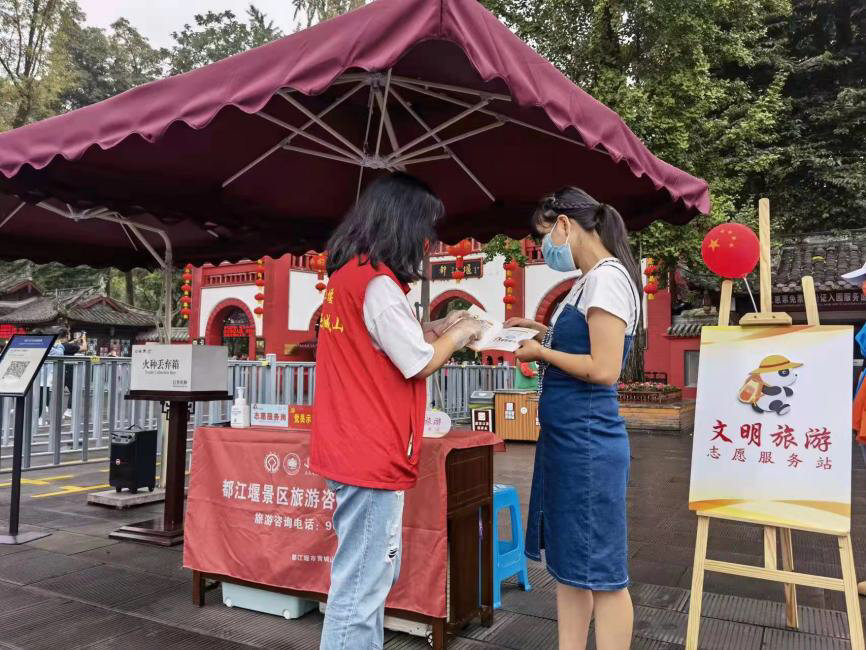 10月1日,国庆假期正式开启,青城山-都江堰景区推出“绿水青山迎国庆 天府之源奏华章”系列主题旅游活动。游客不仅可以线上云游开启探寻天府之源的研学之旅,还可以沉浸式体验剧情游园,并打卡赢福利等一系列超炫、超有趣的主题活动。
