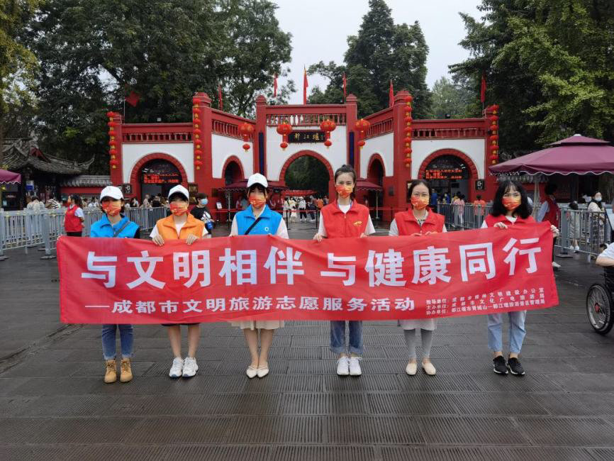 当天,成都市文化广电旅游局还联合青城山-都江堰景区共同发出文明旅游倡议,用文旅业的独特方式向祖国“表白”。《文明旅游倡议书》号召游客从自身做起,遵纪守法、保护环境、爱护文物、文明旅游、安全出行。同时,号召旅游从业者遵纪守法、诚实守信,自觉规范经营行为,共同维护旅游市场秩序。