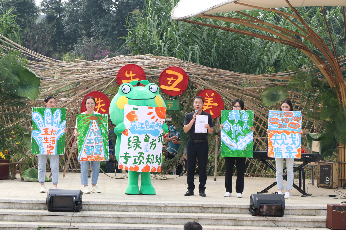 果林、绿道、荷塘,小桥、流水、人家……10月1日上午,成都市蒲江县西来镇铁牛村,巷陌交错、曲水环绕,数百名村民游客齐聚铁牛水乡广场,“为自然而燃·铁牛村低碳生活节”开幕。活动期间,沿着铁牛村的“一轴一环”,将呈现出2场“田野大展”,50位全球低碳达人将给游客带来50场工作坊、沙龙、对谈、手作工坊等低碳好玩的体验。