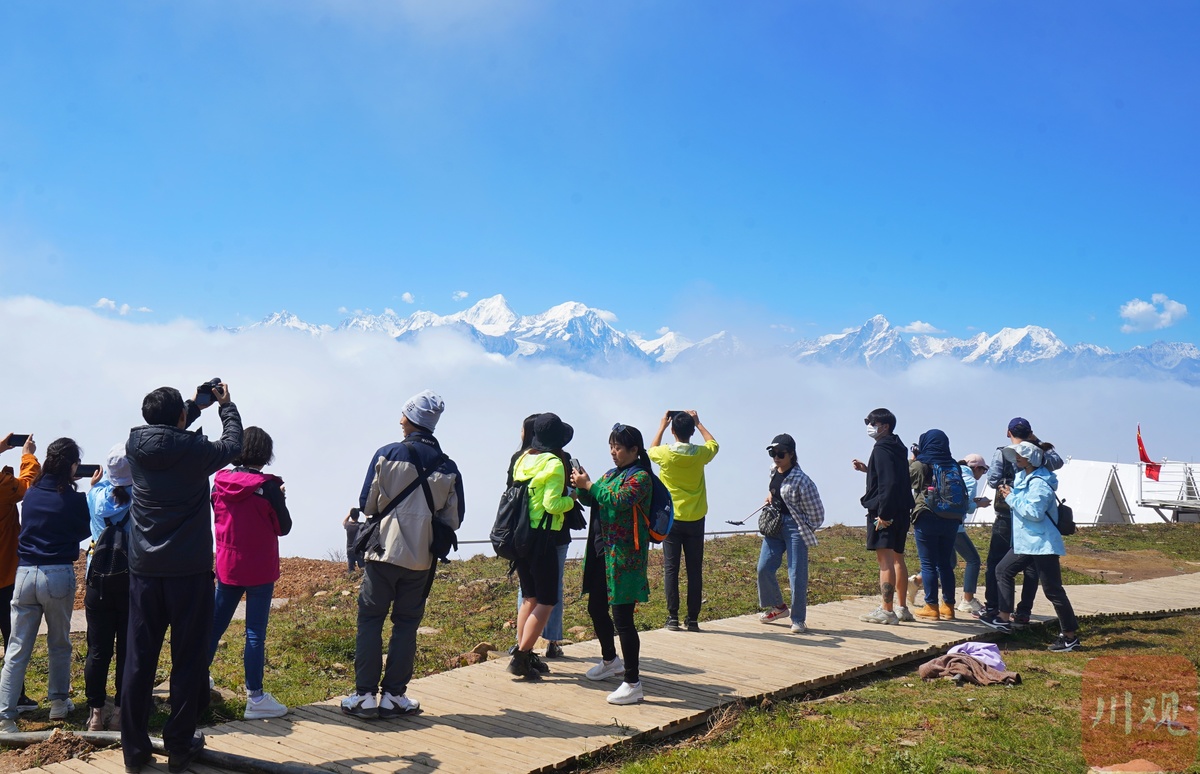 10月1日,正值国庆大假首日,牛背山景区内部测试在当天正式启动。来自四川省内的旅行商、牛背山景区的建设者成为首批内测人员,在雪山云海之巅,共同庆祝祖国的生日。